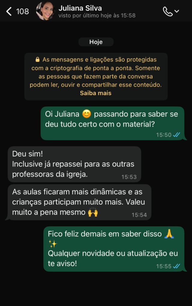 Ao longo do tempo, ela percebeu de perto a dificuldade que muitas professoras e líderes enfrentam ao preparar aulas para os alunos, e as mães ao tentarem ensinar a Palavra de Deus em casa de forma divertida e com propósito.